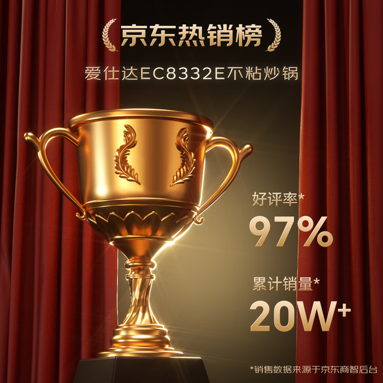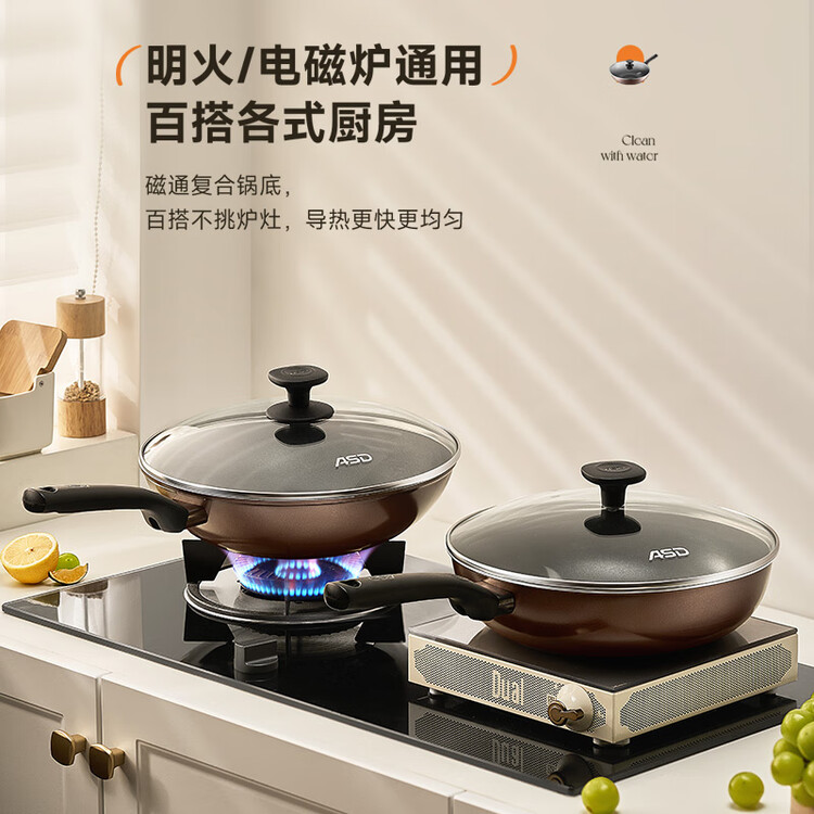 爱仕达(ASD)炒锅不粘锅少油烟平底炒菜锅家用不沾锅32cm燃气电磁炉通用EC