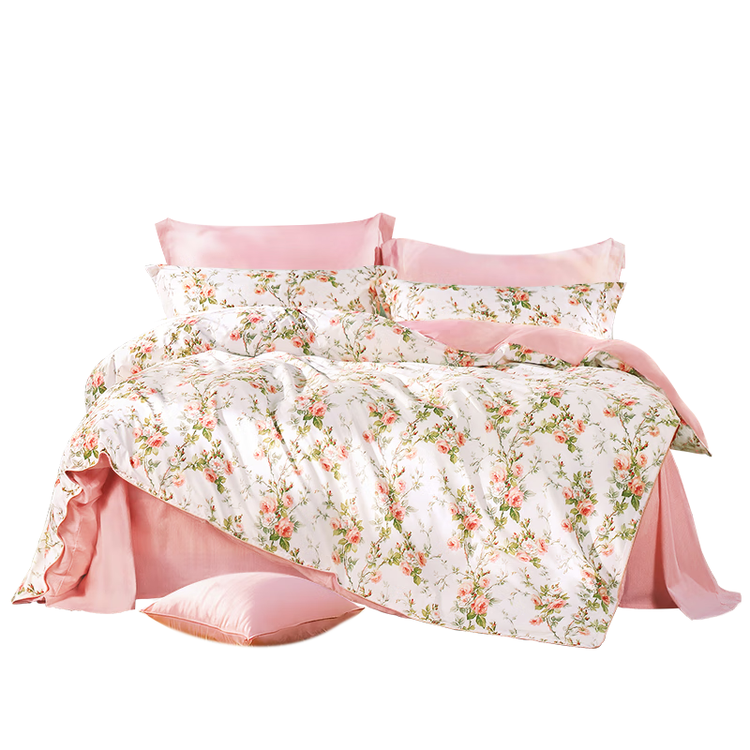 富安娜床上四件套纯棉100%全棉床单套件双人加大被套枕套汐颜1米8床粉家居馆
