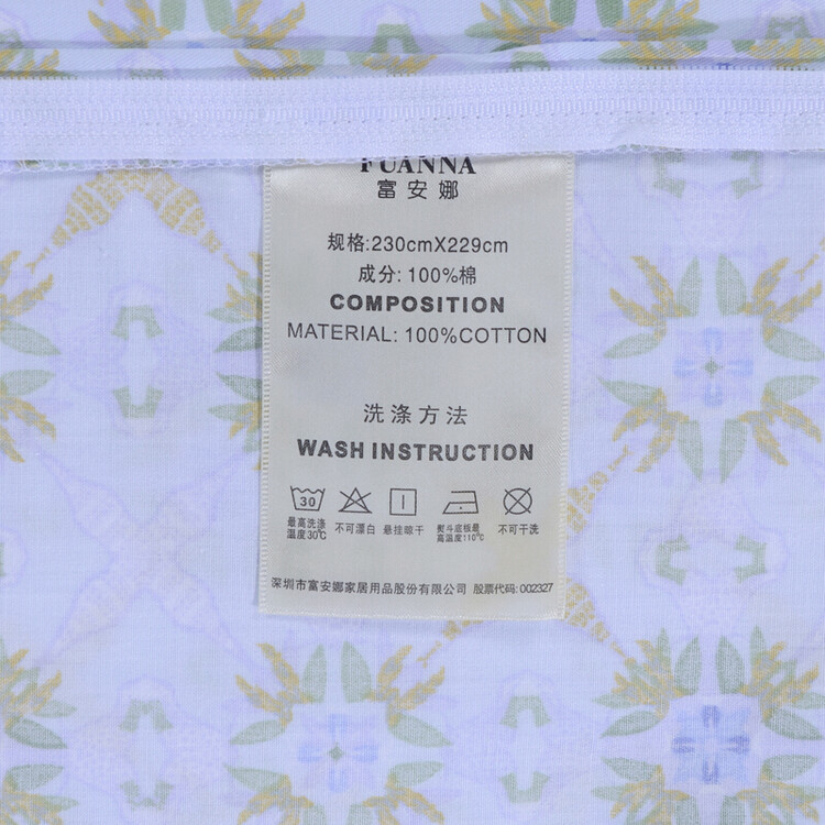 富安娜床上四件套纯棉100%全棉床品套件 双人加大床单被套 1米8床江南