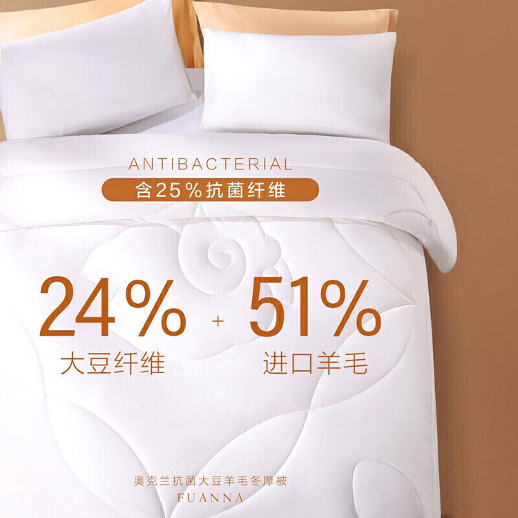 富安娜羊毛被51%进口羊毛被子冬被 双人冬季大豆被芯 约7斤 203*229cm