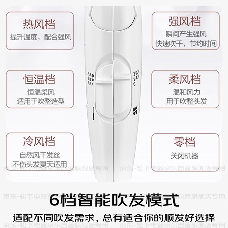 松下(Panasonic)负离子电吹风机高速大功率不伤发家用低噪速干护发送女友生日礼物白色EH-WNE6A