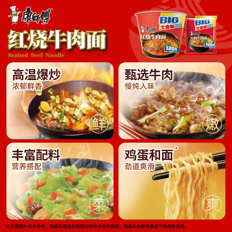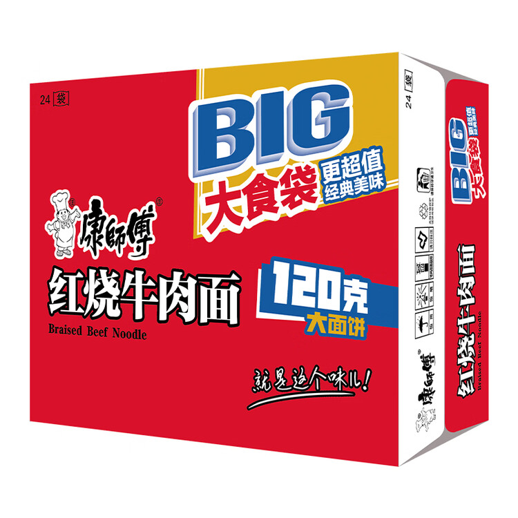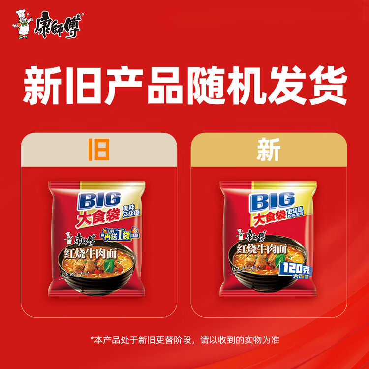 康师傅方便面 大食袋红烧牛肉面145g*24 泡面袋装整箱速食 方便食品