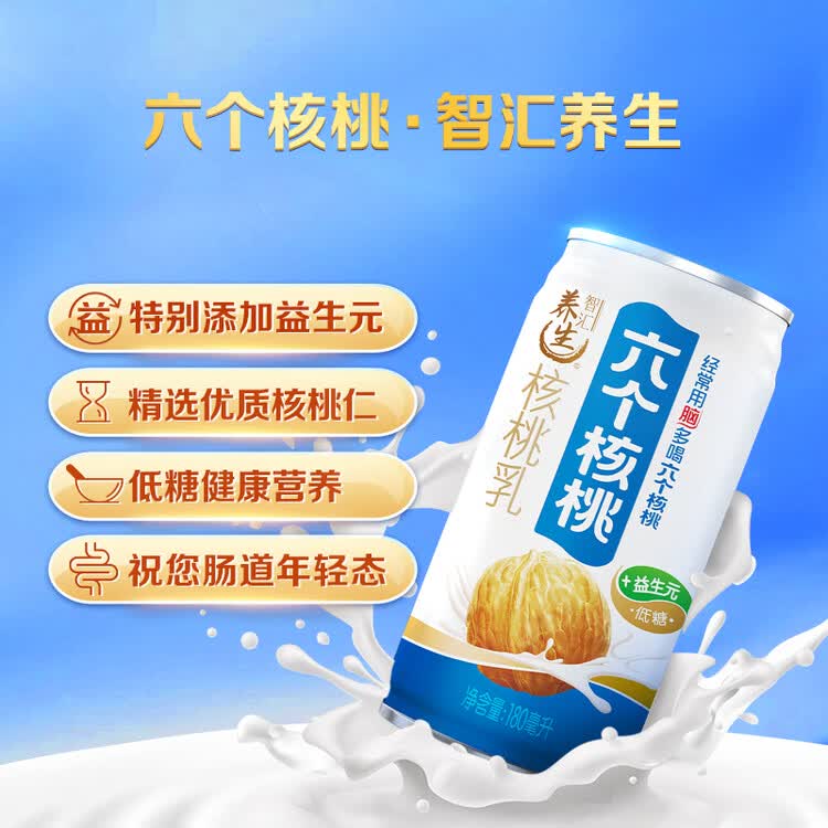 养元六个核桃智汇养生型180ml*24罐量贩实惠核桃乳饮料 整箱装