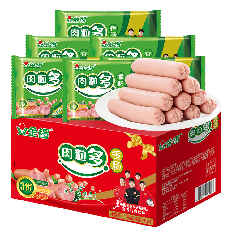金锣火腿肠 肉粒多香肠30g×8支×6袋礼盒装 露营纯肉礼盒
