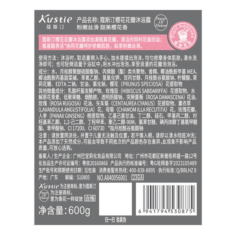 蔻斯汀香味持久滋润美肌保湿香氛沐浴液樱花玫瑰花瓣600g*2套装沐浴露