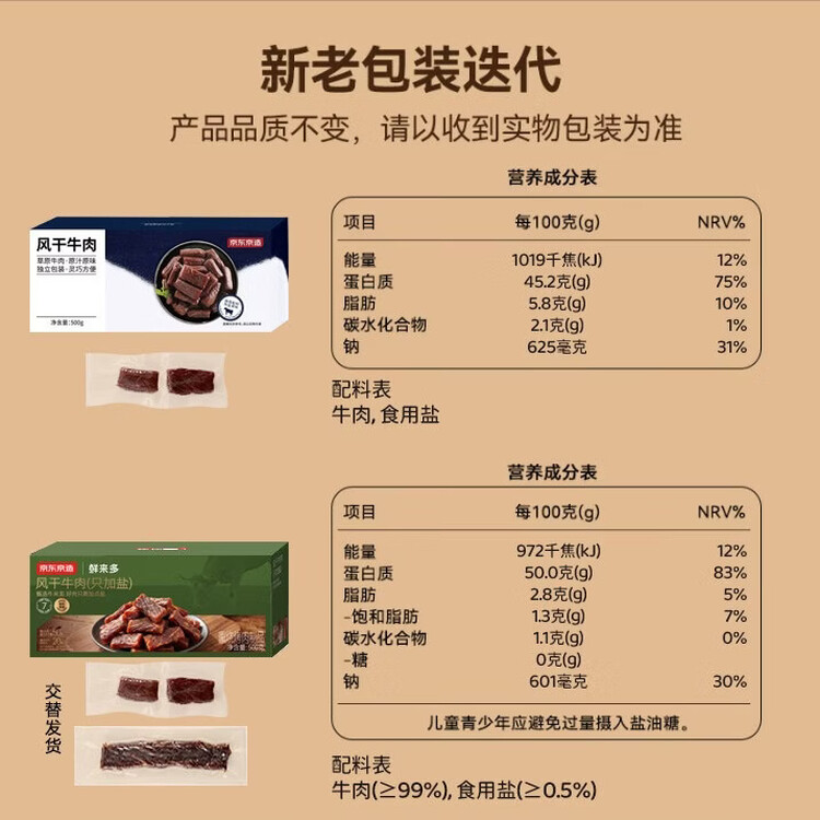 京东京造鲜来多只加盐风干牛肉干500g孕妇儿童肉脯零食内蒙古特产健身减脂