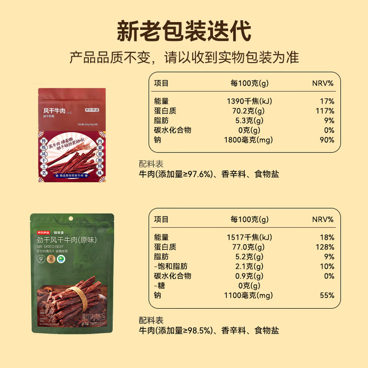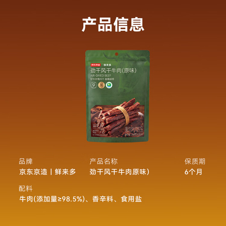 京东京造鲜来多经典超干牛肉干200g原味内蒙特产零食肉干肉脯健身减脂期