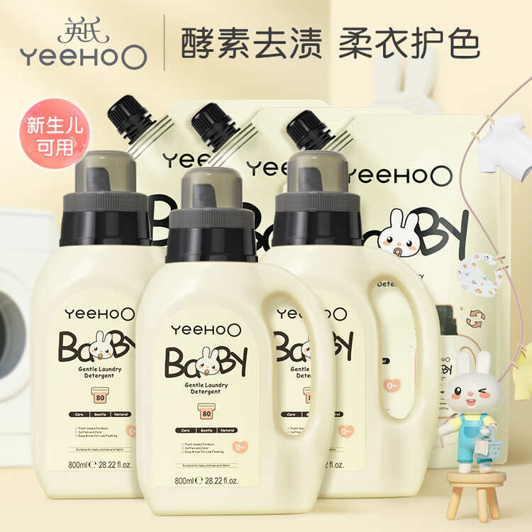 英氏婴儿洗衣液婴幼儿童洗衣液大人可用 酵素洗衣液 (3瓶3袋共7.8斤 )