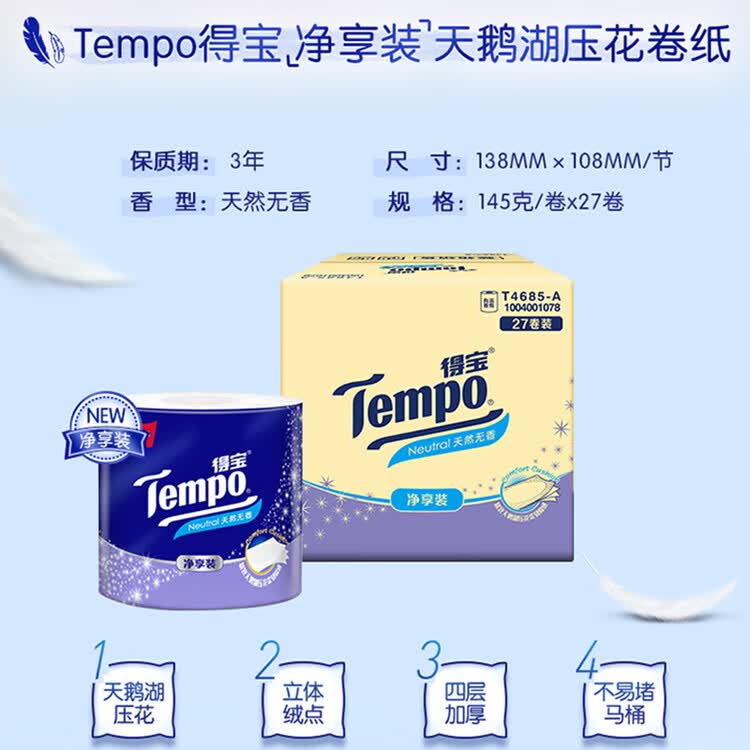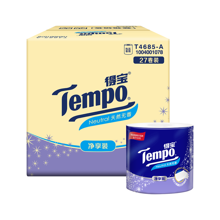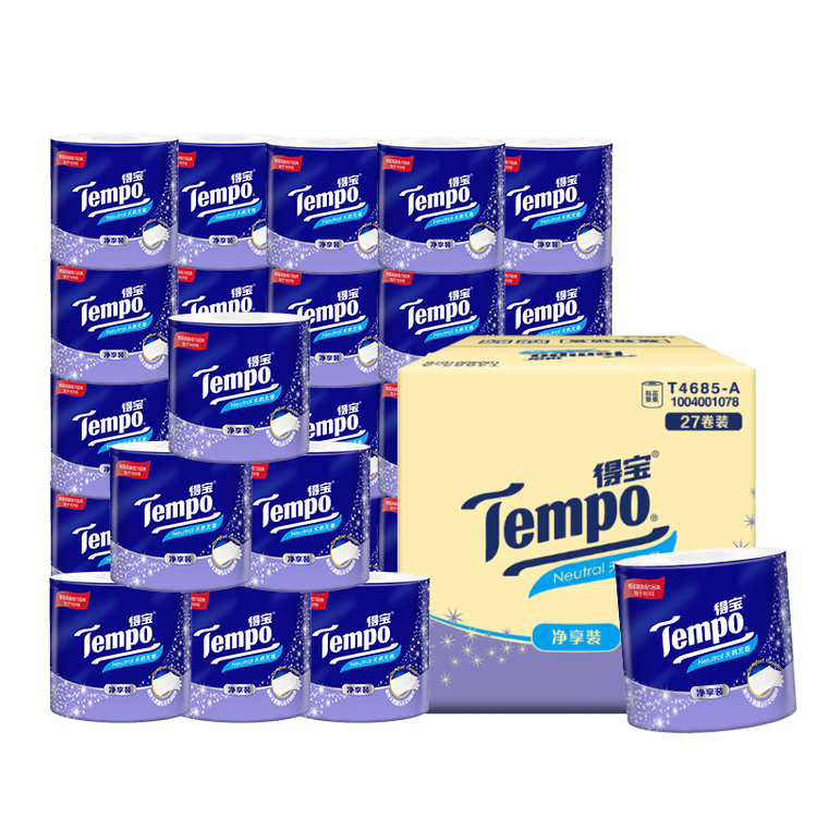 得宝(TEMPO)一博同款 有芯卷纸 无香4层145g*27卷 可冲散 卫生纸 卷筒纸