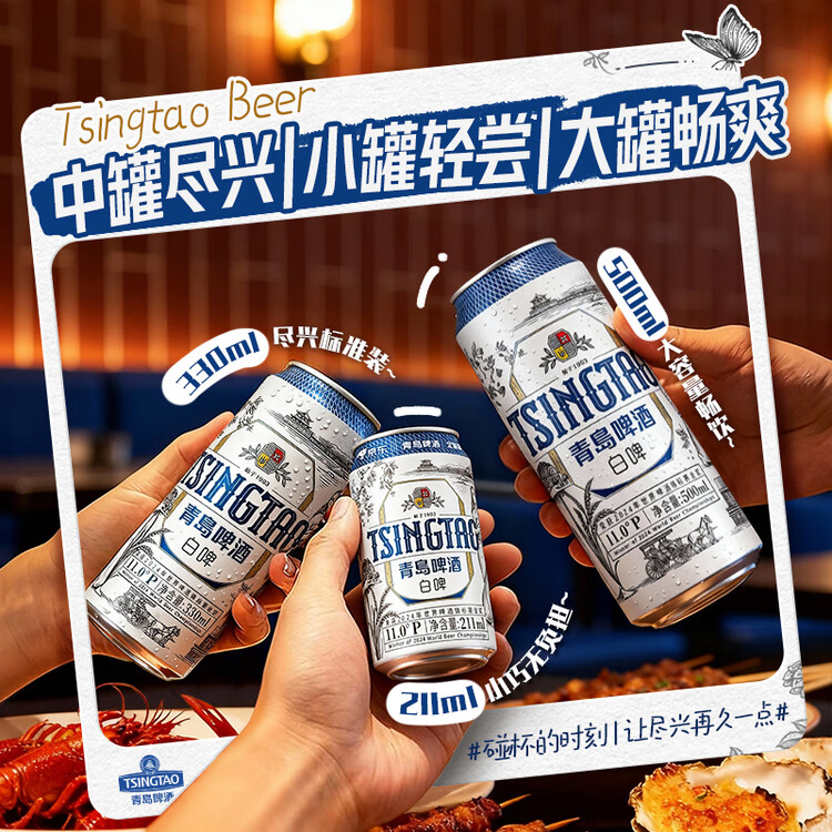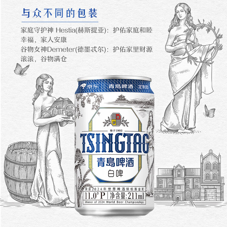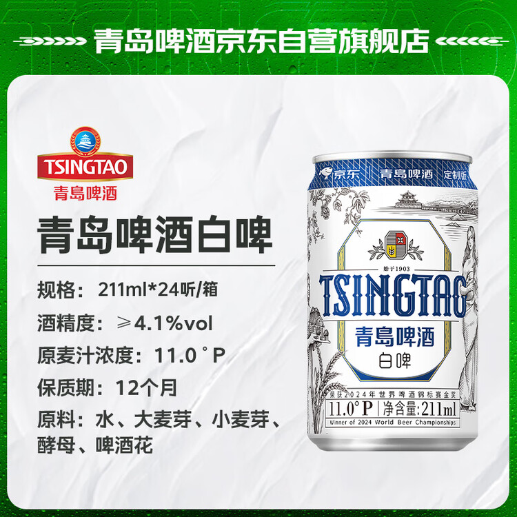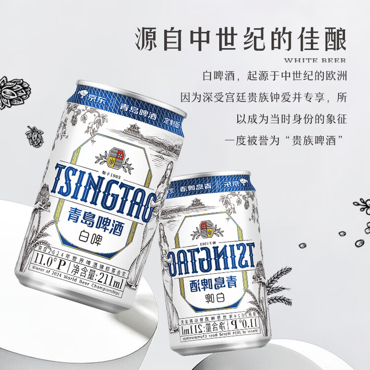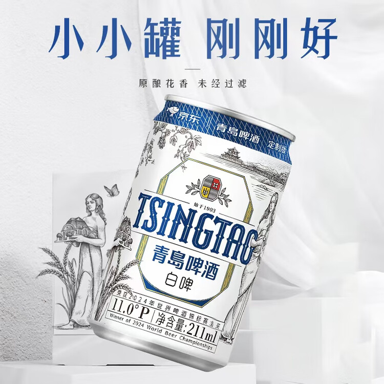 青岛啤酒(TsingTao)精酿白啤 211ml*24罐 京东定制版踏春送礼