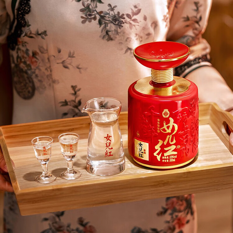女儿红酱酒传世红坛两瓶装53度酱香型白酒纯粮封酒喜宴婚宴用酒500ml*2
