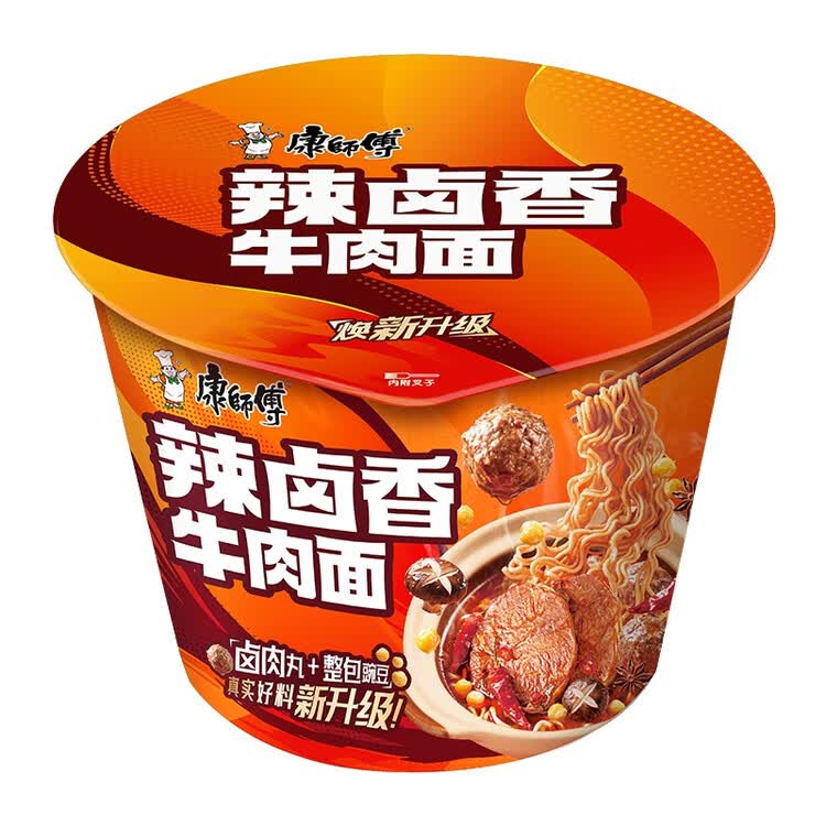 康师傅方便面【JDG无畏推荐】经典辣卤香牛肉面120g*12桶 泡面