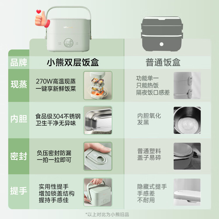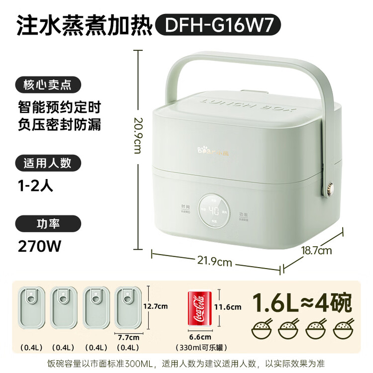 小熊(Bear)电热饭盒 加热饭盒 热饭神器上班族双层304不锈钢办公室可插电加热饭盒DFH-G16W7