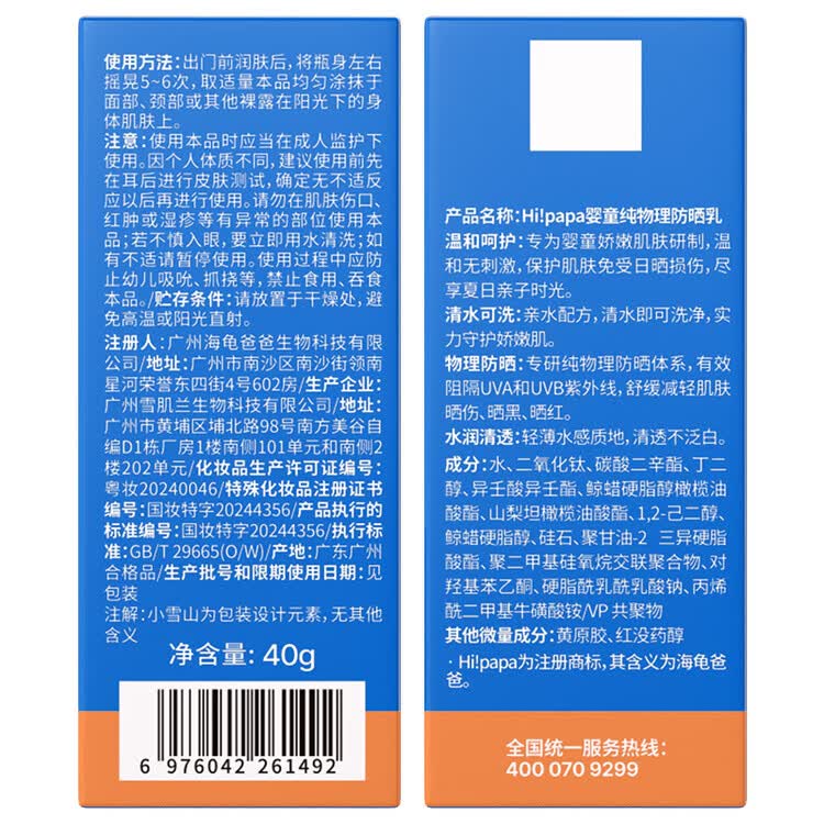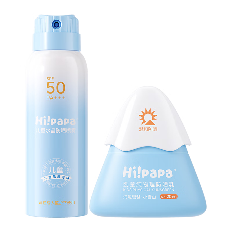 京东直供新 > 母婴 >婴童洗护 >京东直供 >海龟爸爸儿童防晒套装水感防晒喷雾100ml+小雪山防晒乳40g