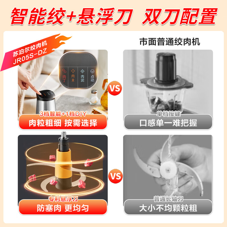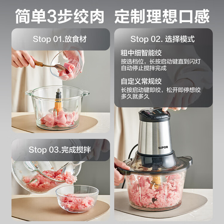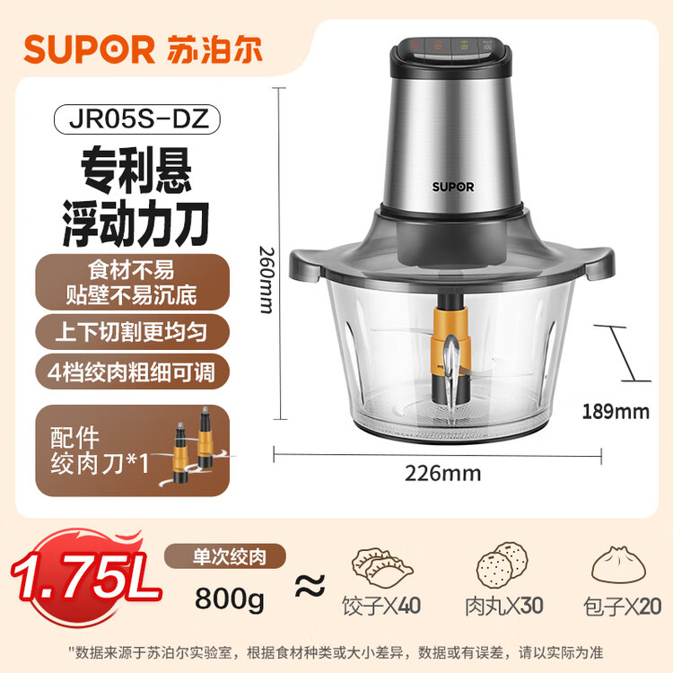 苏泊尔(SUPOR)绞肉机家用 料理机辅食机婴儿 多功能绞馅机 碎肉机大容量大功率搅拌机JR05S-DZ