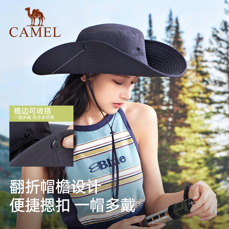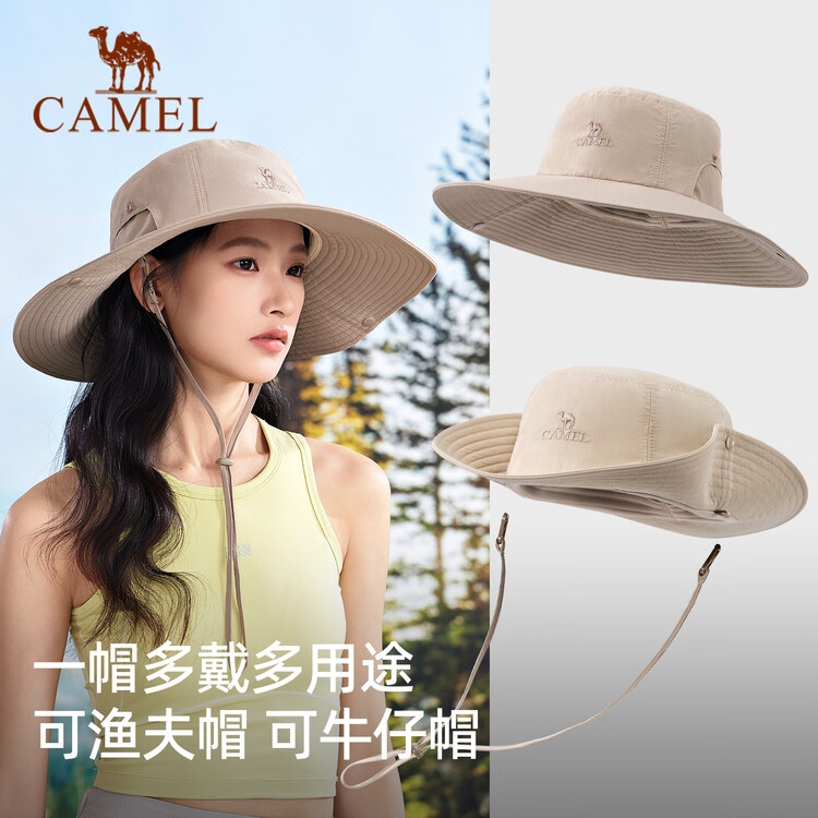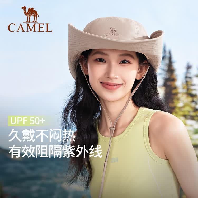 骆驼(CAMEL)大帽檐登山帽防晒帽防紫外线UPF50+西部牛仔帽丛林徒步遮阳帽0003